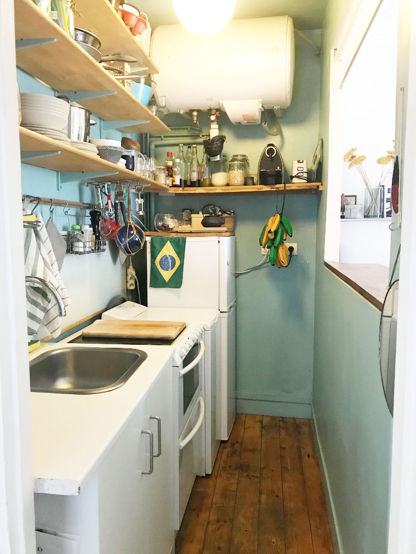 Il comprend une entrée, une salle d'eau avec wc, une cuisine semi-ouverte sur séjour idéalement exposé sud (Soleil entrant toute la journée) avec cheminée ainsi qu'une grande chambre de 12 m² sur cour.