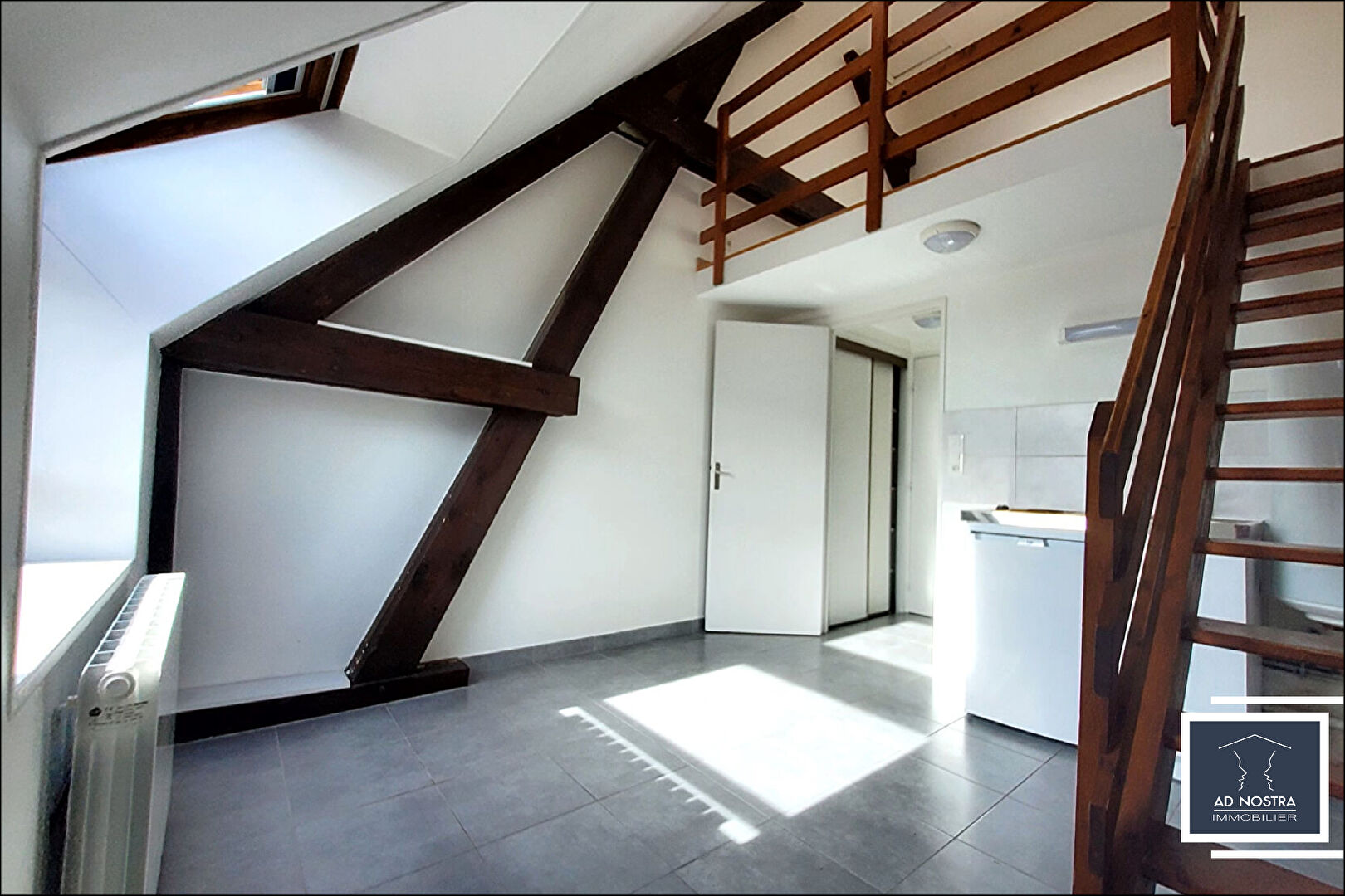 Il vous offre une entrée avec placards, une pièce principale avec coin kitchenette, une mezzanine, une belle salle d'eau avec douche et wc.