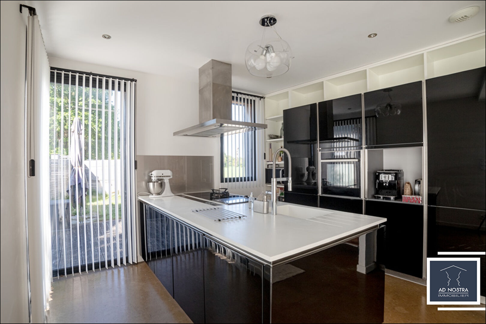 Dans un environnement calme et verdoyant, à proximité immédiate de toutes les commodités, votre agence AD NOSTRA IMMOBILIER est heureuse de vous présenter cette superbe maison d'architecte en ossature bois ultra lumineuse, édifiée sur un terrain arboré de 480 m².